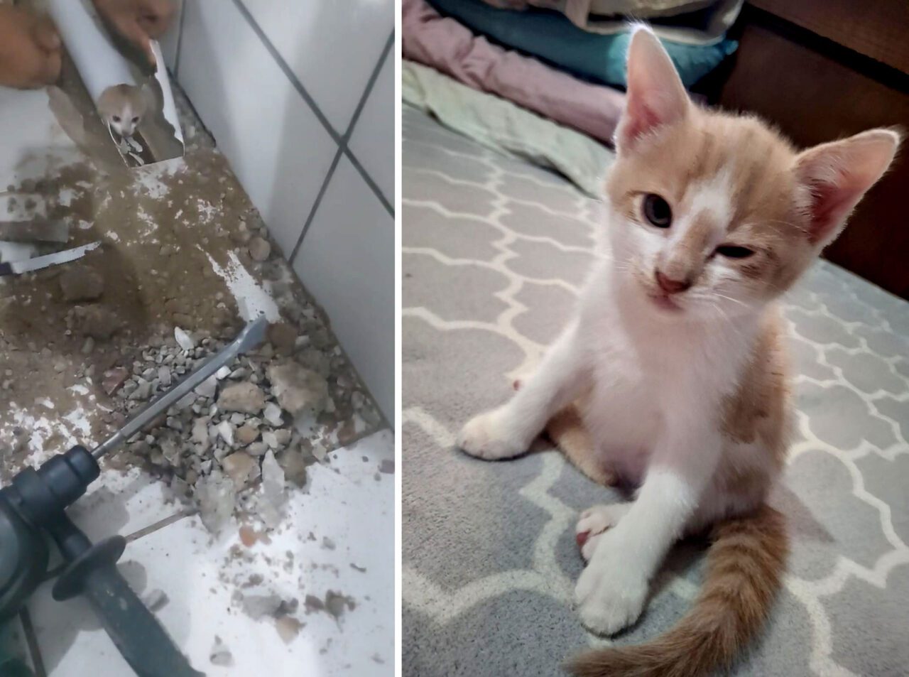 Após localizar o gatinho, foi necessário realizar a quebra de parte do piso da residência e também do encanamento, uma ação que foi previamente autorizada pela proprietária da casa. Com cautela e precisão, a equipe conseguiu retirar o animal, que estava em uma situação de risco, mas sem sinais de ferimentos.