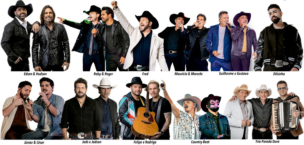 Já Júnior & César trazem para a festa o segmento mais atual do sertanejo regional, com repertório voltado ao público jovem e presença frequente em eventos e festas do interior.