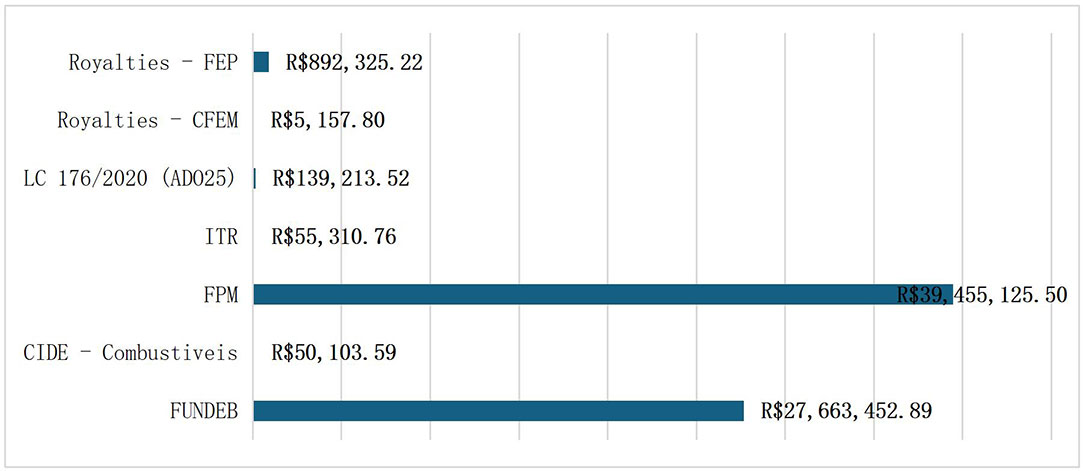 O repasse do Fundo de Participação do Município (FPM) totalizou R$ 39.455.125,50 representando 57,8% do valor do repasse, o Fundeb teve o repasse de R$ 27.663.452,89 correspondendo a 40,5% do total repassado, os Royalties – FEP totalizou R$ 892.325,22 correspondendo a 1,3%, o ITR teve o repasse de 55.310,76 (0,1%), o Cide Combustíveis R$ 50.103,59 (0,1%) e o Rayalties – CFEM o total de R$ 5.157,80
