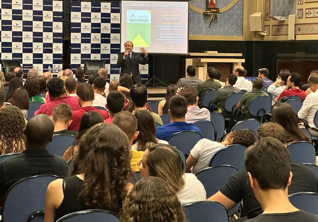 “Abri a Semana Jurídica do Claretiano – Centro Universitário, com a palestra abordando o Tribunal de Contas e seu papel no Estado Democrático de Direito e, durante a apresentação, também compartilhei minha primeira experiência como promotor de justiça substituto, que ocorreu em Batatais. Naquela época, fui gentilmente convidado a residir por um período com os Claretianos, e a acolhida que recebi permanece marcada em minha memória. O Pe. Sérgio Ibanor Piva, atual reitor do Centro Universitário, foi um dos padres que me acolheu e hospedou nos anos 80. Retornar a este local e partilhar minha trajetória vai muito além de uma simples palestra”, destacou.