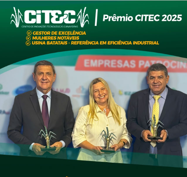 Além desse marco, as Usinas Batatais e a Cevasa foram destaque no Prêmio CITEC 2025, realizado no dia 14 de agosto, em Sertãozinho, que celebra empresas e profissionais de destaque no setor sucroenergético. Neste ano, as unidades receberam três reconhecimentos: